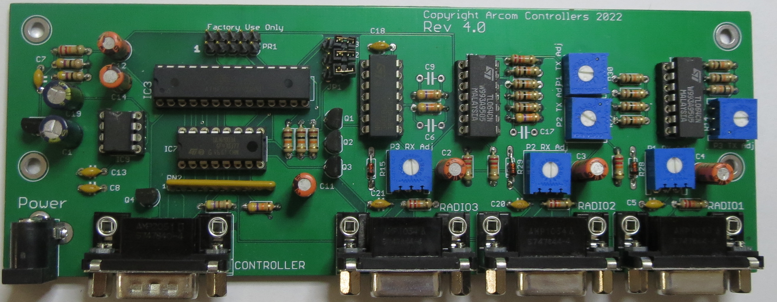Polarity of each transceiver’s COS signal is easily selectable by push-on jumpers on the pc board and audio levels (both RX and TX) are adjustable as well.
